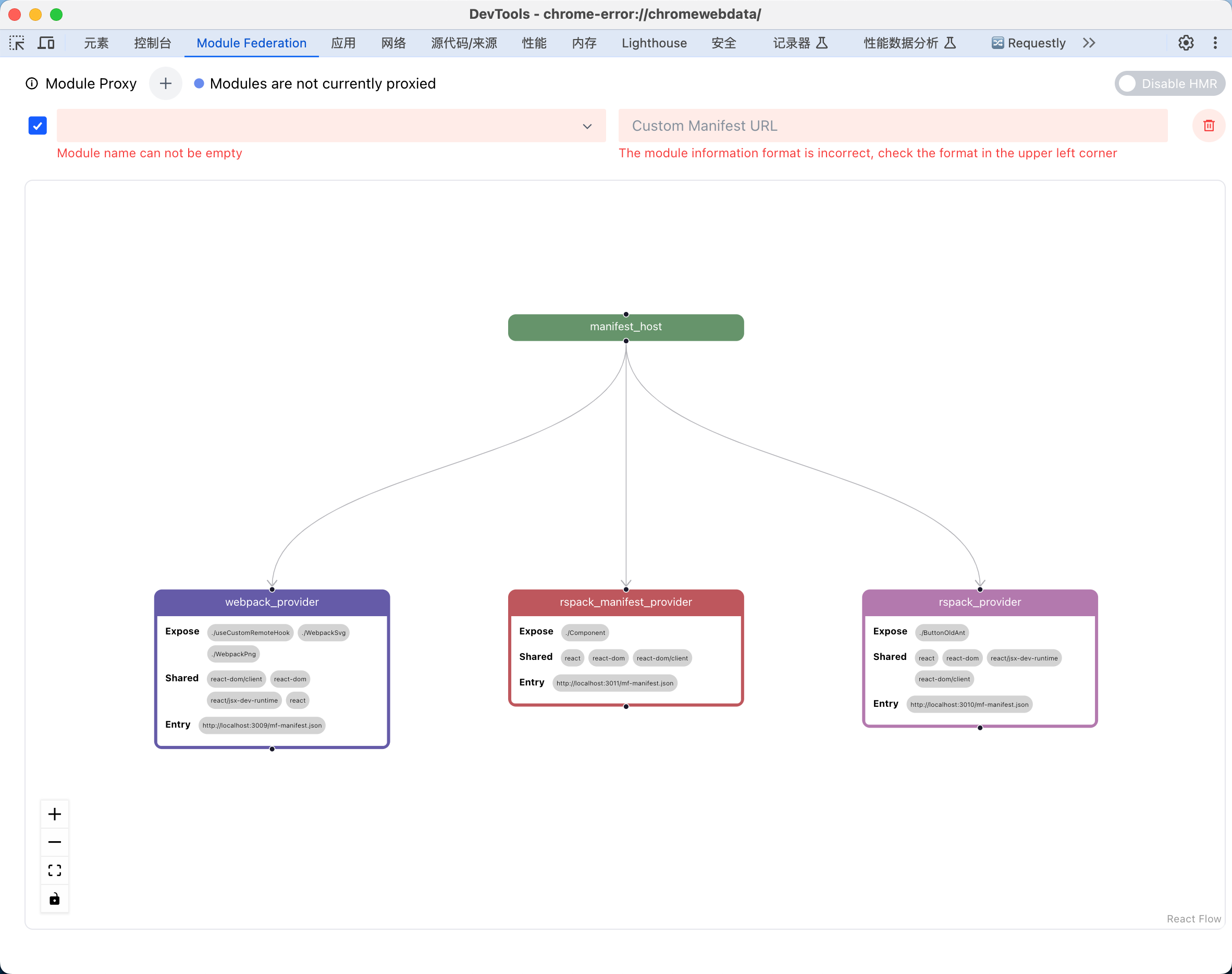 architecture differs from the traditional monolithic application development model. Its characteristics of separate development, deployment, and debugging necessitate a new set of debugging tools to meet new usage scenarios, such as: how to verify the effect of modules in actual projects when developing Module Federation